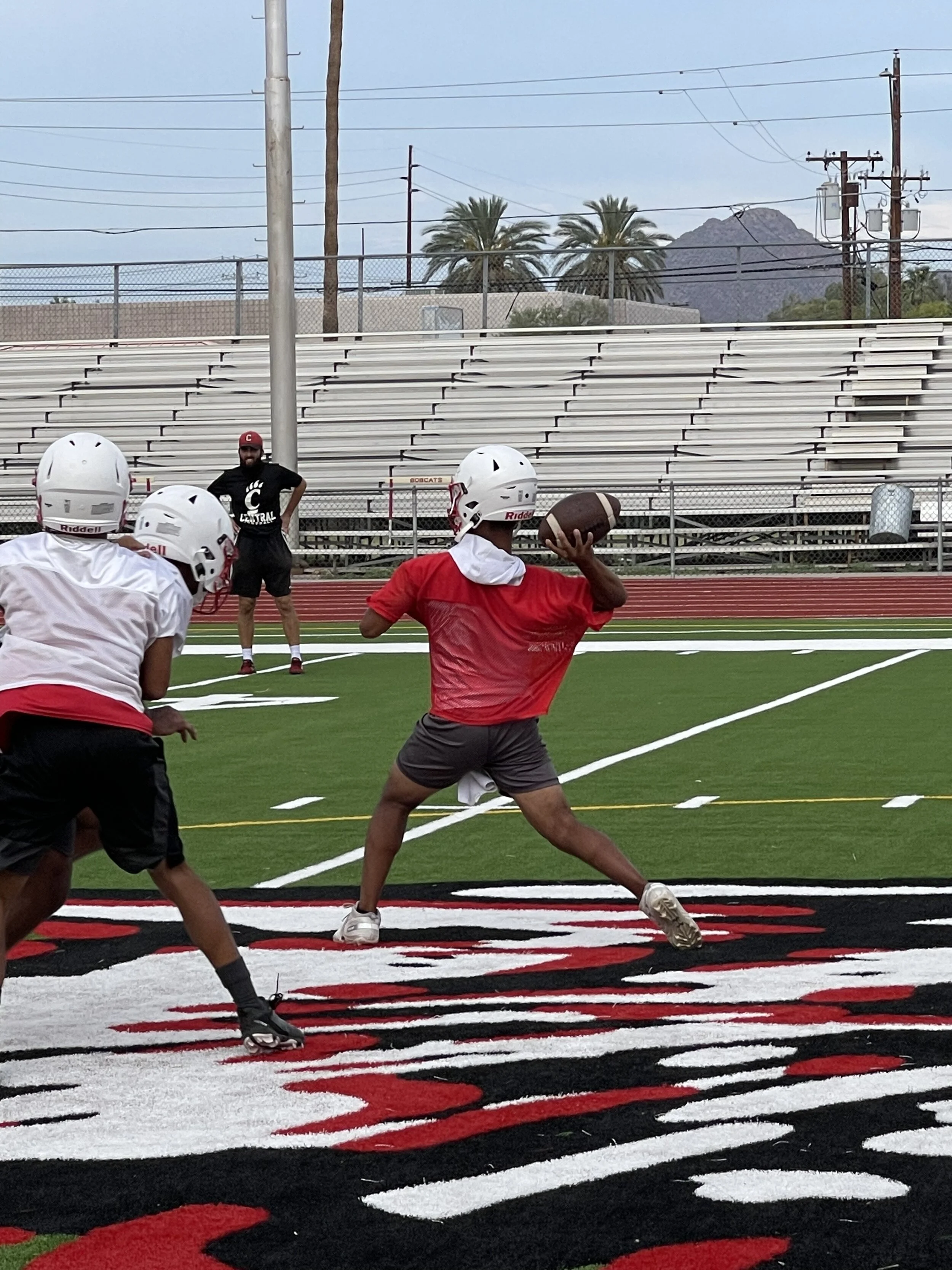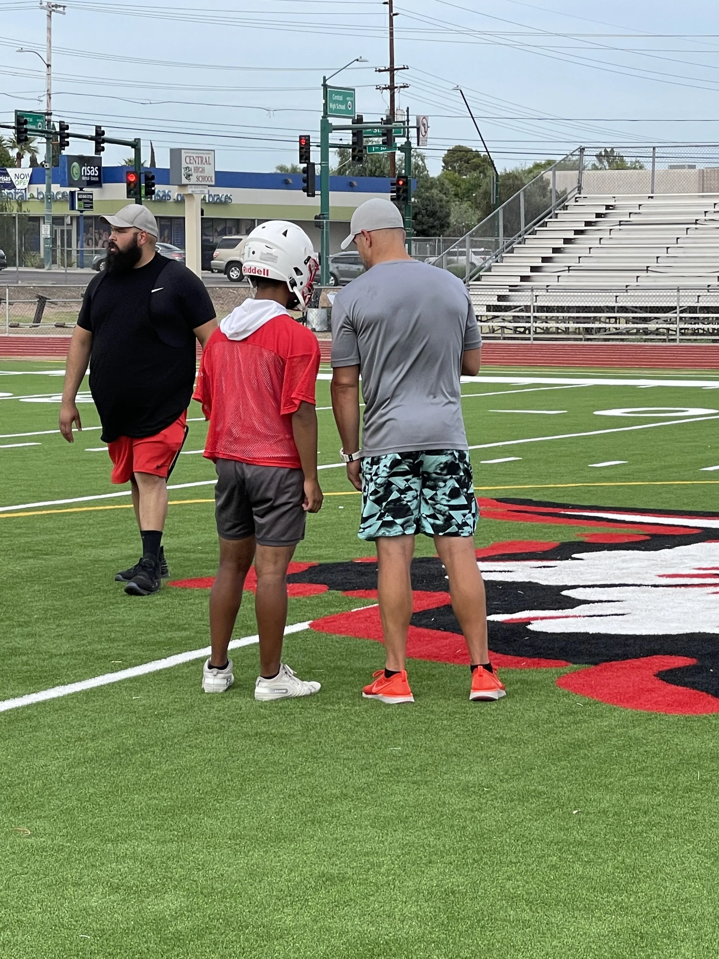 For those of you that do not know, the Central Football Team has tragically lost two young men that were so inspirational to them. Quortez Conley, brother of 2023 Standout WR/DB Quintin Conley was stabbed to death on the Phoenix Light Rail after watching the varsity scrimmage and cheering his brother on. “Quortez was a promising athlete himself and our biggest fan.” Hovik says. If the loss of Quortez wasn’t enough, Central High School and the Arizona Football Community was devastated with the loss of 2021 Defensive Standout Corvel Simmons to an horrific event. I spoke with Central Offensive Coordinator, Coach Mat Allen, who was like a father to Corvel. Allen couldn’t hold back emotion when saying “That’s my guy”.