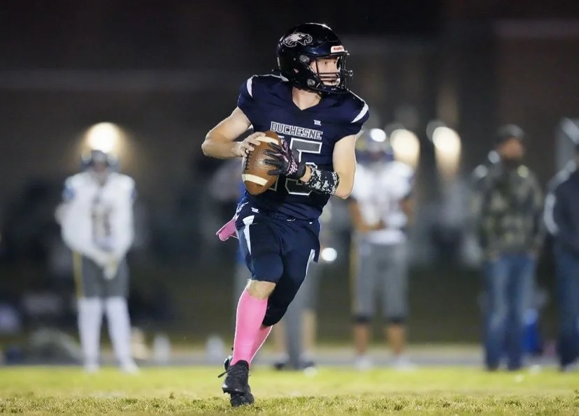 Parker Crum is a QB at Duquesne High School (UT) and continues to develop as a solid football player and teammate! He is a student of the game and extremely versatile. Parker is athletic enough to run the option and astute enough to lead a spread offense. He is part of the class of ‘24 and has been a starter since his Freshman year, leading the team in passing and rushing. Parker was named first team all-state and a state champion, throwing for over 1500 yards in 2021.