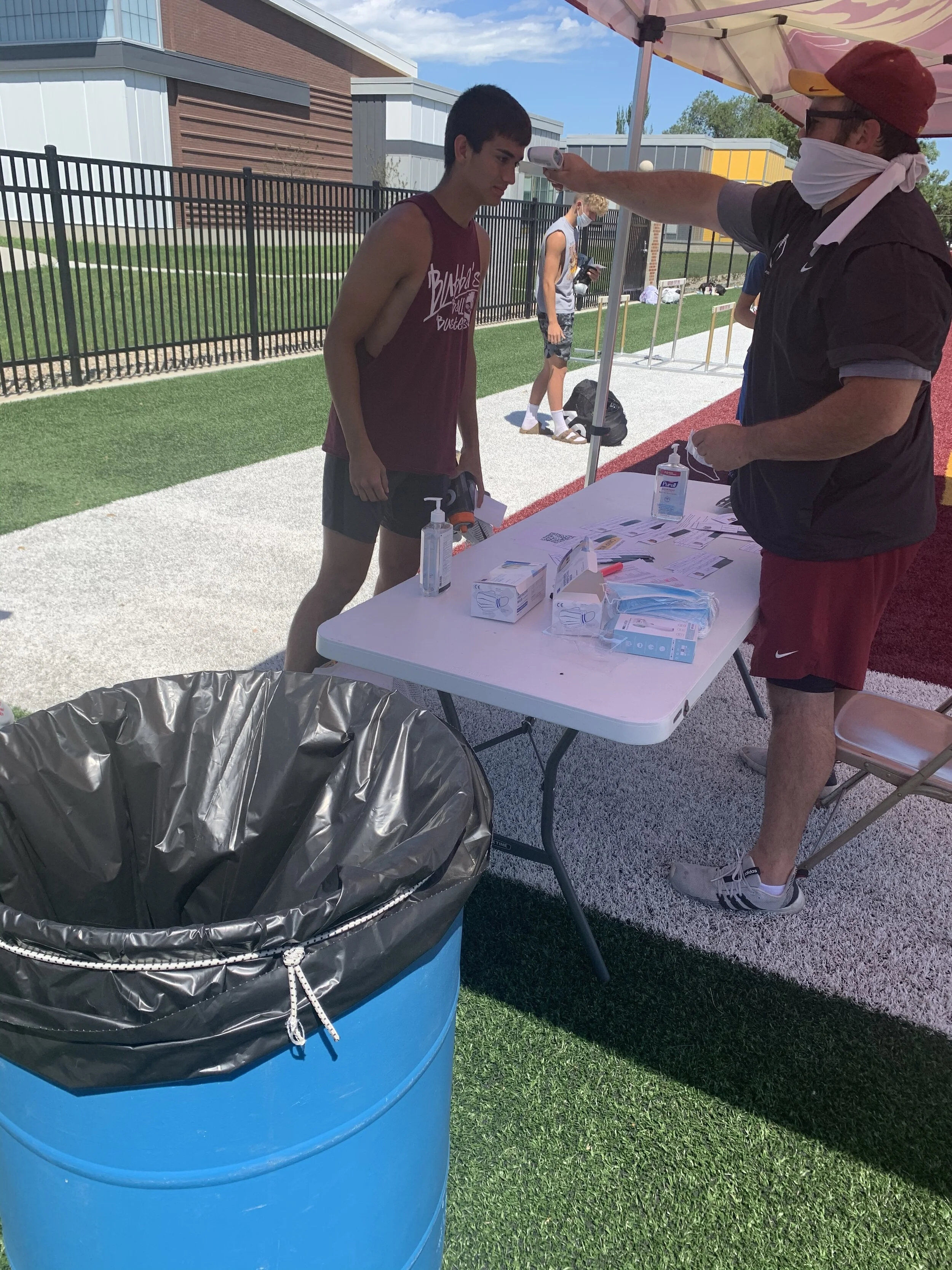 Usually one of the most confusing parts of a Camp or Showcase never-mind how confusing it can get trying to meet all of the Covid-19 Guidelines. The NSU Staff put on their masks and got ready for Day 1. Scheduled for a 1 pm start on 7/27 on the Wolves main practice field. Coach Schmidt had his full staff and supporting staff begin setting up at 6 am. Skills players started lining up outside of the main gate as early as 10 am, but even 3 hours early, the staff was well prepared. With 2 entrances conducting registration and screening to keep groups to a minimum and distance amongst athletes the process was underway. Both entrances had a coach registering athletes, taking temperatures and explaining camp guidelines to minimize Covid risk. Once registration was complete Coach Schmidt gathered all of the athletes in a big circle and broke the ice introducing his staff at which time every coach told the players their favorite activity during the quarantine. The mood was energetic and relaxed which enabled the athletes to perform at a high level. One of the rules that Coach Schmidt had put in place for the camp was not very popular, was that parents would only be able to view the camp from outside the fence line with no field access. Parents were 6 feet apart from each other but even in this instance parents were notified ahead of time, brought chairs and it was not an issue.